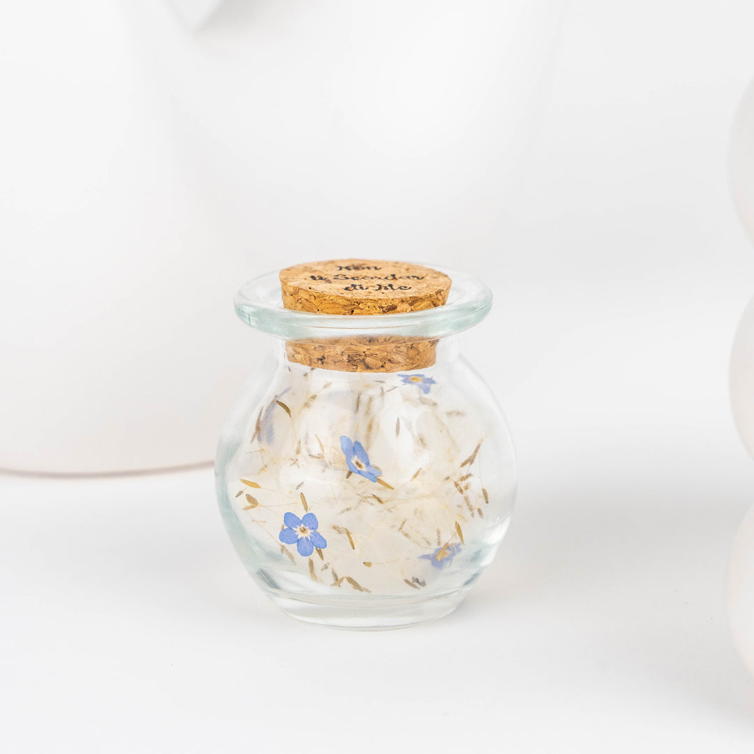 Ampolla in vetro con Semi di Soffione e fiori di Non ti Scordar di Me