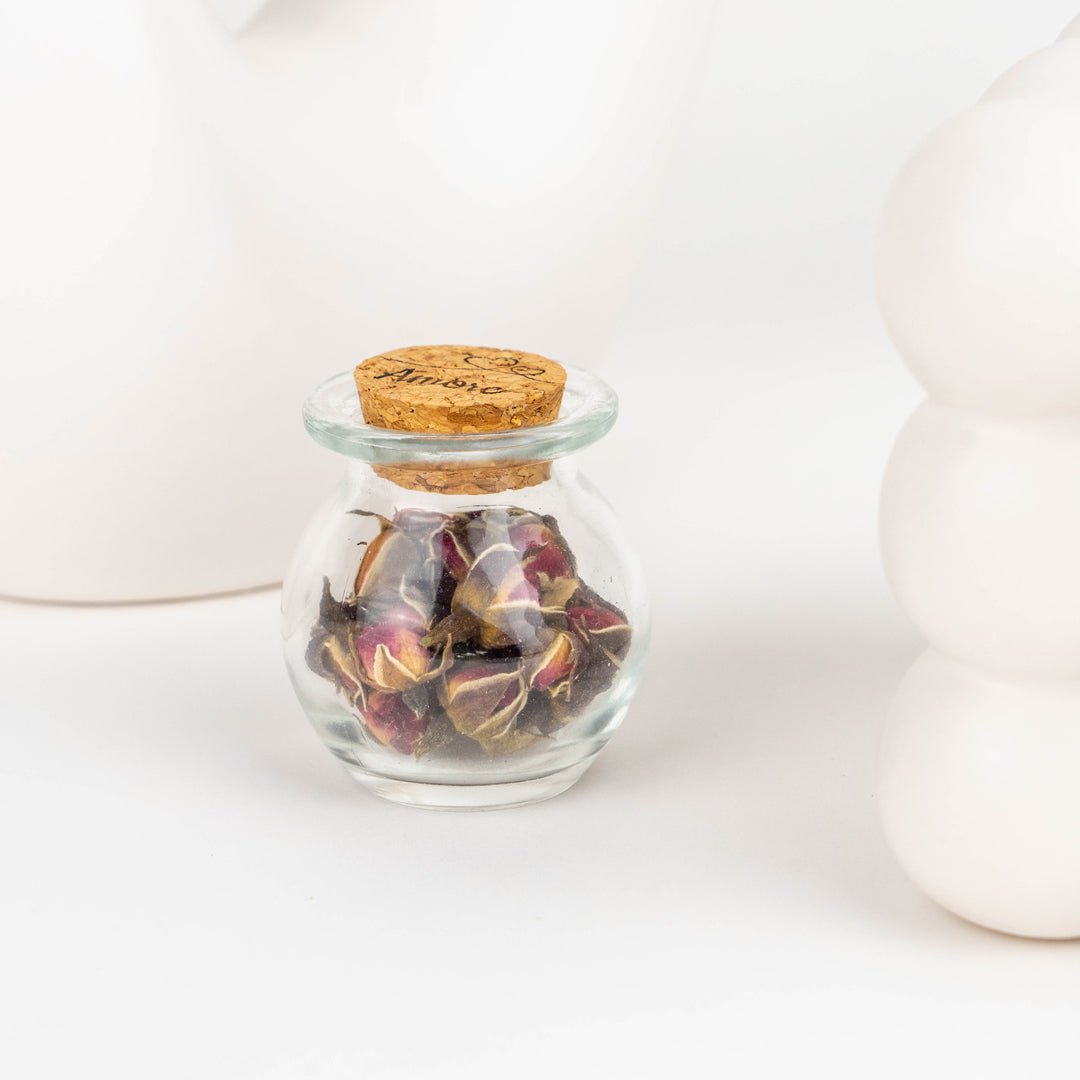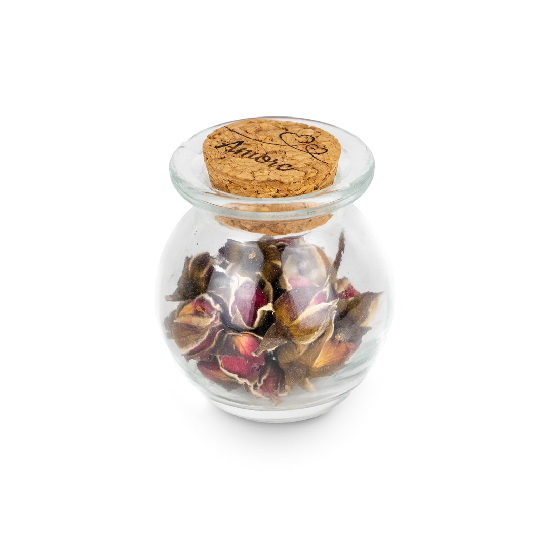 Ampolla in vetro con Semi di Soffione e fiori di Rosa Rossa