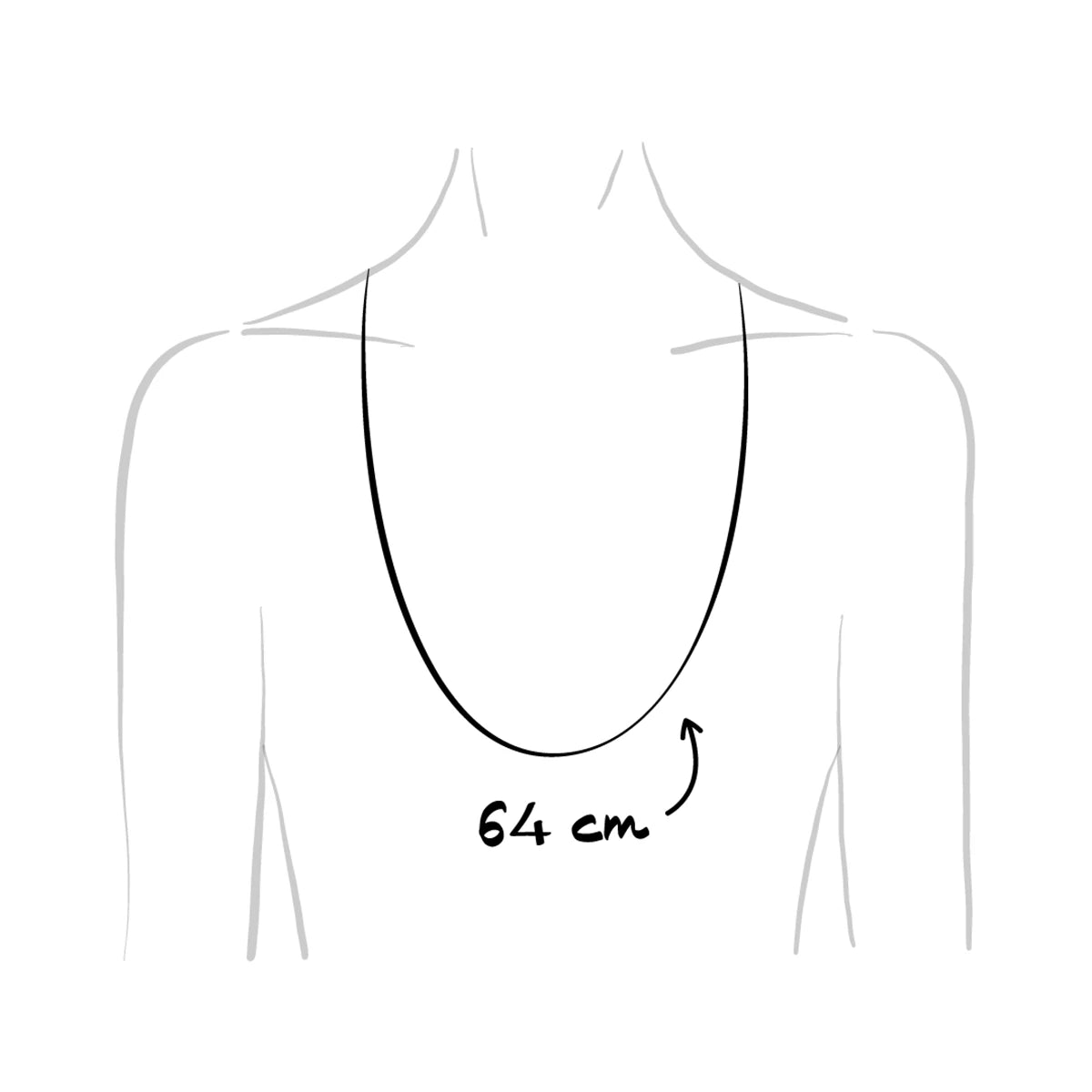 La catena (lunga 64 cm e pensata per essere comodamente indossata dalla testa) è realizzata in acciaio inox chirurgico 100% anallergico certificato AISI 316.