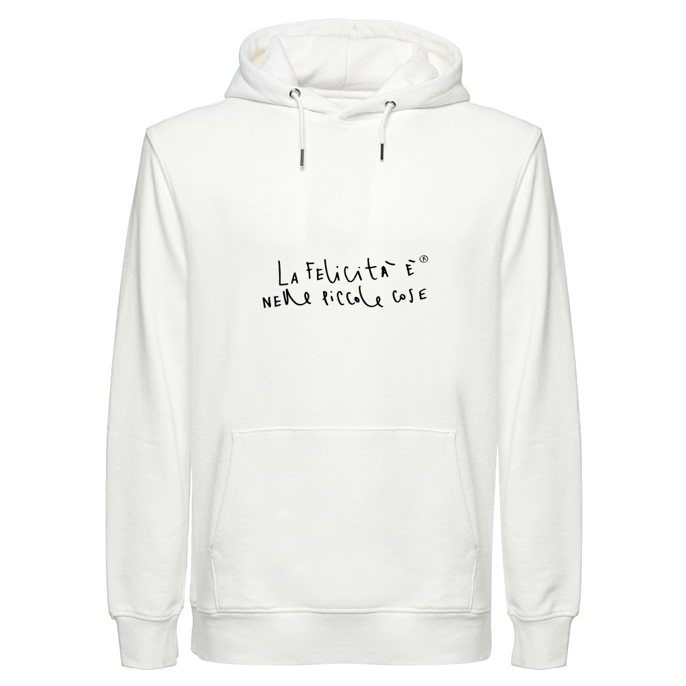 Felpa con scritta "La Felicità è nelle piccole cose" realizzata in collaborazione con Hundredpercent® è un'azienda di ricerca e sviluppo che si concentra esclusivamente sullo sblocco del potenziale della canapa per creare molteplici prodotti sostenibili per lo stile di vita.