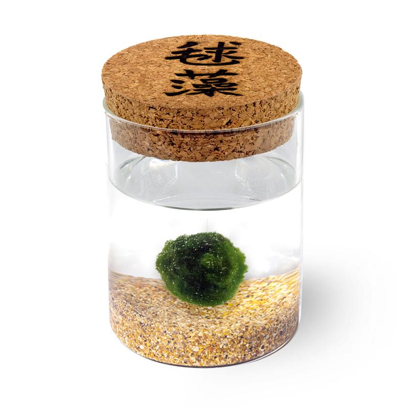 Marimo Original®. Un’alga dalla storia leggendaria custodita in un esclusivo vaso di vetro con tappo in sughero marchiato a laser, con Ideogramma giapponese "Marimo".
