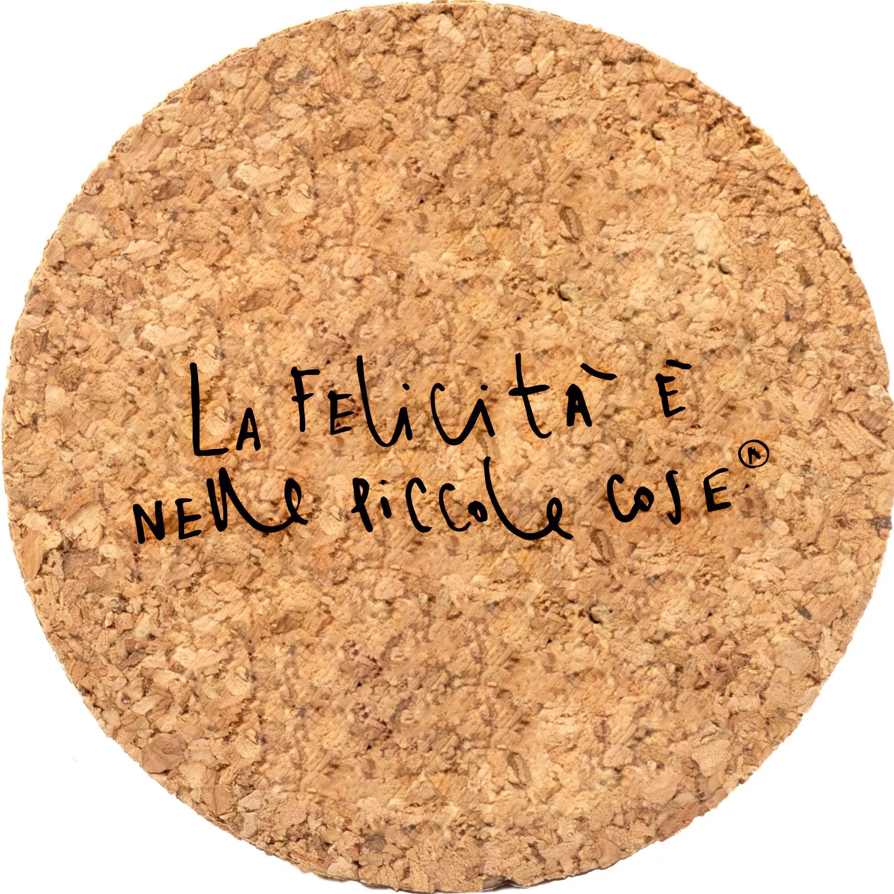 - Vaso in vetro con tappo in legno sughero con payoff “La Felicità è nelle Piccole Cose” marchiato a laser.